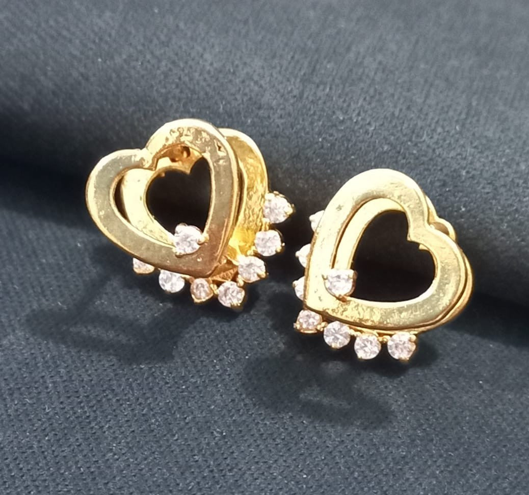 Add a touch of love and sparkle to your look with these Gold Finish Heart Stud Earrings with Crystal Accents. Designed with a graceful heart outline and finished with delicate crystal stones at the base, these studs offer a perfect blend of romance and elegance.